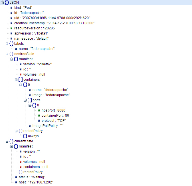 观察单个pods的数据存储结构,以json的格式存储。