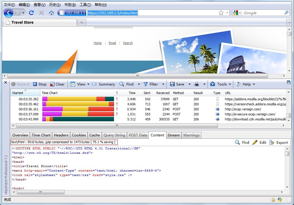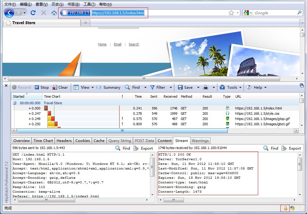 四、在线测试(可启用httpwatch查看效果)